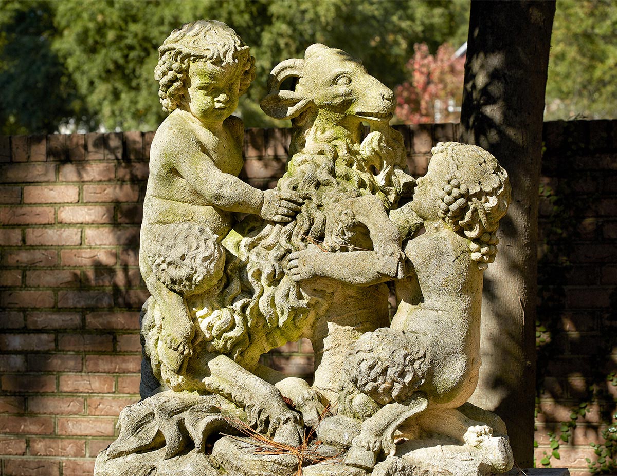 The South Caroliniana Garden is located behind the South Caroliniana Library. Once home to the Horseshoe's original Memorial Rose Garden, it now features a three-tiered fountain, a Civil War cannon ball and a defective marble column originally intended for use on the state capitol.